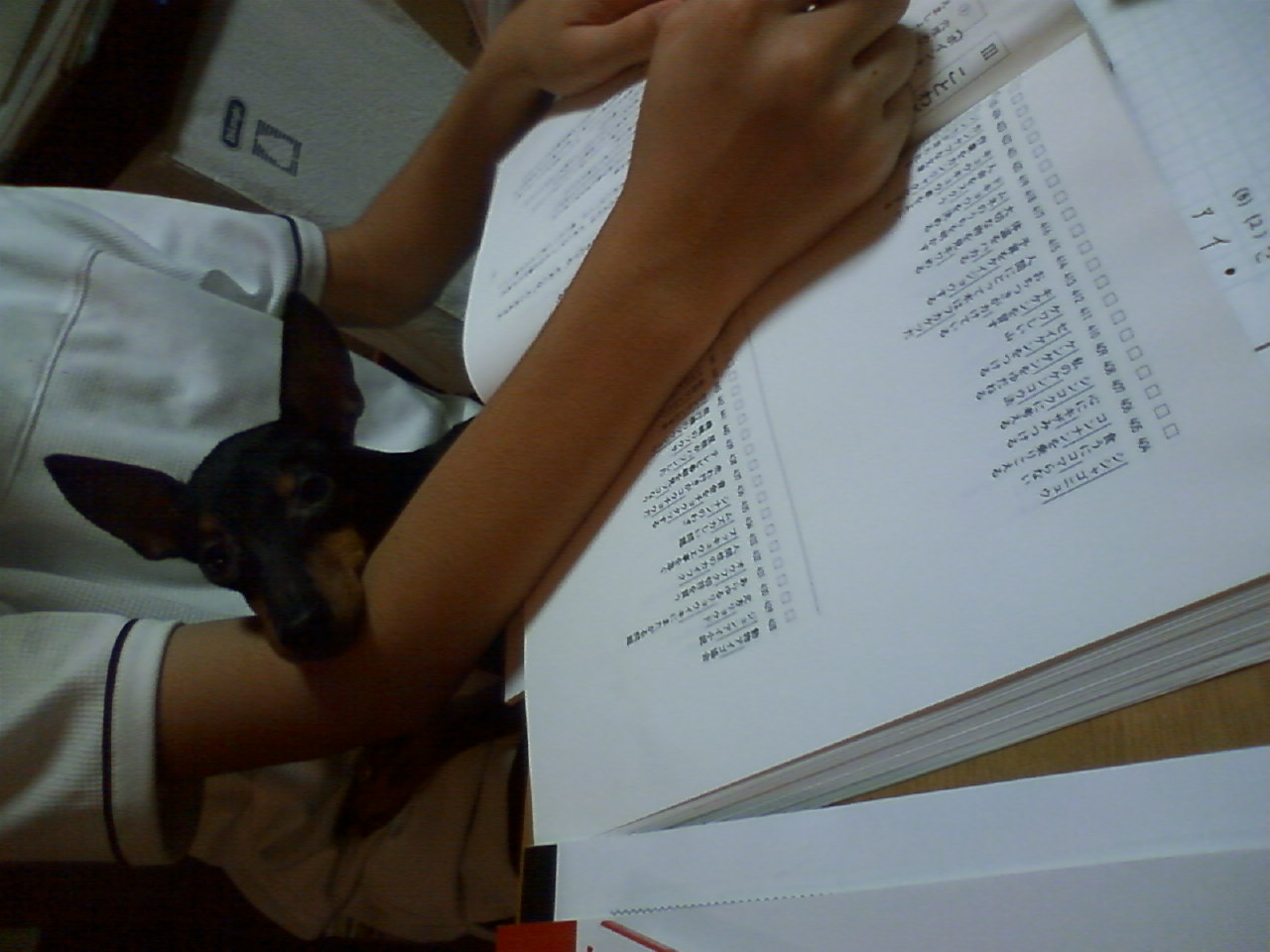 でも右手を枕にされて、勉強になりません。