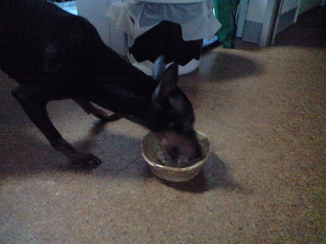 ドッグフードがシャラシャラ~と気持のよい音を立てます。