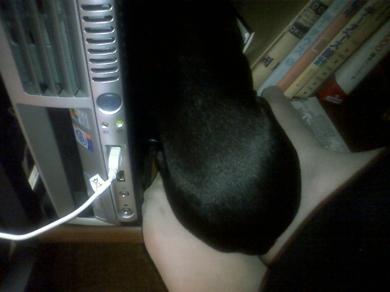 本をかき分け入り込み(本がすっかり倒れてしまいました)